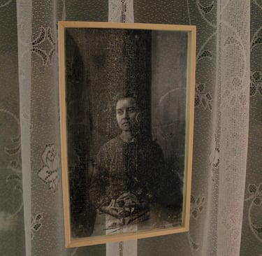 I assigned traits of a nonspecific Indigenous culture to portraits of individuals from the 1920s to mimic the process of taking a valuable aspect of a subservient culture and re-appropriating it within a dominant culture without consideration of its origin or meaning. The images are created from contact prints made using found glass plate negatives. To make the prints appear more authentic to the period by creating the attributes of the individualized culture by hand drawing them on acetate and then laying them on top of the negative to show how things potentially could have appeared if reverse appropriation had occurred much earlier in history. To address the concept in the context of contemporary society, I incorporate technology to create distorted renderings from the original photographic prints. The distorted images speak of the way aspects of the individualized culture are lost between the distance of time from actual existence, subversion, and re-appropriation.